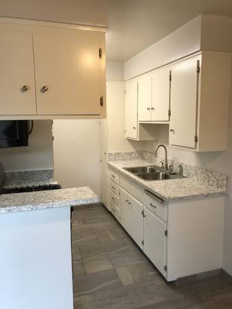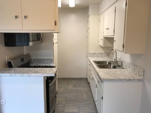 Located at 18651 Clark Street in Tarzana, California, Clark Plaza presents a beautifully spacious two-bedroom, two-bathroom apartment on the second floor. The entire unit has been fully renovated, featuring a stainless steel stove and microwave, porcelain tile flooring, quartz countertops, new ceiling fans, fresh interior paint, a new air conditioning unit, updated mini blinds, and newer laminate flooring throughout.