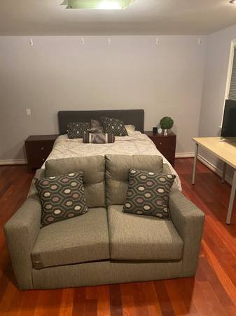 Furnished guest unit offering complete privacy with its own separate entrance. The space features a fully marble-appointed bathroom and ample storage closet areas. Located in the 90210 zip code, it provides a serene canyon setting surrounded by nature. The property is conveniently close to Beverly Hills, UCLA, Bel Air, Sherman Oaks, and major freeways.