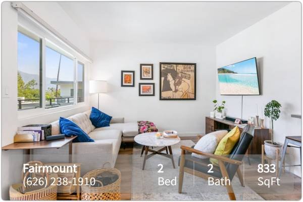 The Fairmount area is a superb choice for tenants looking for a centrally situated home in Pasadena. This attractive neighborhood, featuring palm trees and scenic mountain vistas, provides easy access to many of the city\'s top points of interest. Situated just over a mile from Downtown Pasadena, The Fairmount is also approximately three miles from the Rose Bowl Stadium, the venue for the famous annual football game. The community is located directly to the north of the California Institute of Technology and Pasadena City College. It is also right next to the Playhouse District, which houses the acclaimed Pasadena Playhouse, numerous museums, art galleries, and other cultural attractions.