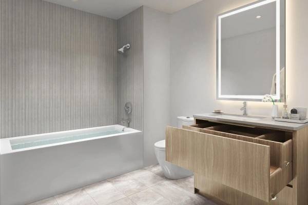 Featuring exclusive interiors from a renowned team of award-winning designers, the residences at Opus are a study in modernity and respite. Contemporary spaces are filled with light, surrounded by views, and accented with natural materials. Please note that floor plans are artist’s renderings. All dimensions are approximate. Actual product and specifications may vary in dimension or detail. Not all features are available in every rental home. Prices and availability are subject to change. Base rent is quoted on a monthly basis. Additional fees may apply, such as, but not limited to, package delivery, trash, water, and amenities. Deposits vary. Please see a representative for complete details.