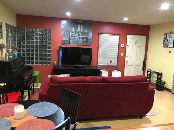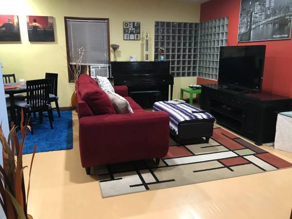 - Includes a sofa, piano, and a 46” flat-screen HDTV.