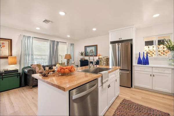 This enchanting and thoughtfully designed storybook residence, featuring three bedrooms and two and a half bathrooms, is situated in central Los Angeles. It provides nearly 1,500 square feet of living area that has been carefully updated to merge contemporary amenities with classic character. The bespoke kitchen is a chef\'s ideal workspace, boasting generous storage, a butcher block island, and premium appliances such as an integrated sink and dishwasher.