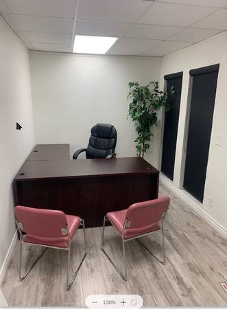 The lease is month-to-month, with utilities paid, furnished spaces, and both building and parking lot signage areas included. Internet service is also part of the package. This is a well-maintained, clean office environment for auto dealers, conveniently located near the DMV.