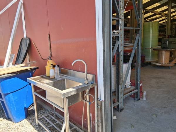 I am offering the complete barn and warehouse space for lease at a rate of two dollars per square foot. The total area measures four thousand five hundred square feet. The monthly rental fee is open to discussion. The structure features two roll-up doors and includes a sizable office within the warehouse area. Shelving runs along both sides of the building, with an open central area spanning twenty-five hundred square feet. This shelving can be taken out if it is not required.