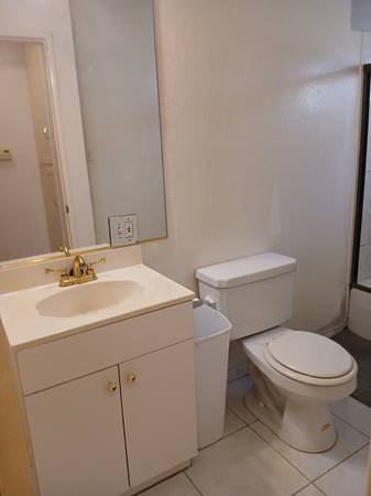 Room available for rent in the Tarzana area, situated south of the boulevard. The space is a partially furnished bedroom with a private bathroom attached.