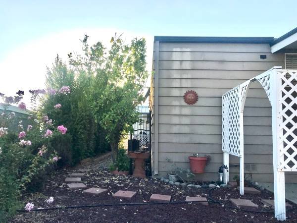 The home includes kitchen privileges in a modern, clean galley-style kitchen, a shared living and dining area, and a small backyard and side yard with a garden for plants and outdoor ambiance. On-site laundry facilities are available, along with a shared covered carport if required. The goal is to create a happy, safe, serene, and comfortable living environment.