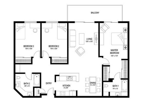 The building features a gym on the same floor. The apartment itself has an updated kitchen equipped with a dishwasher. On-site laundry facilities are available for residents. There is also a rooftop patio offering various amenities.