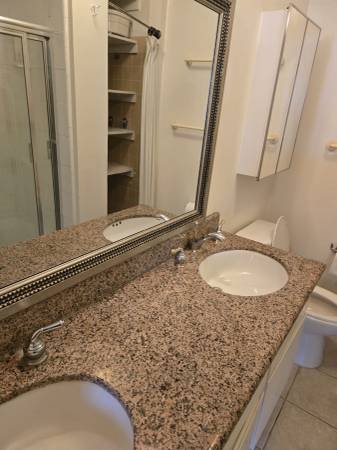 The listing is for a professional working woman or a female student to share a two-bedroom, two-and-a-half-bathroom condominium with an independent, friendly senior woman.