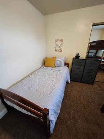 The residence features a full kitchen equipped with pots, pans, and utensils. All bills and utilities are included in the rent, and free WiFi is provided. A washer and dryer are available in the home, and street parking is readily accessible. The location is convenient, situated close to major bus lines. The home is maintained in a clean condition, and pets are not permitted.