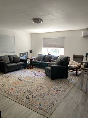 Hi, we are two easygoing professionals who do not smoke, maintain a clean living space, and work standard weekday hours. He works as an electrician and enjoys rock music, while I am a Program Manager at a rehabilitation facility. Our location is close to Griffith Park, which allows for regular hiking trips. We both have steady employment, consistently pay our bills when due, and respect privacy. The available room does not come furnished, and the bathroom is shared with him. He is tidy in shared bathroom spaces.