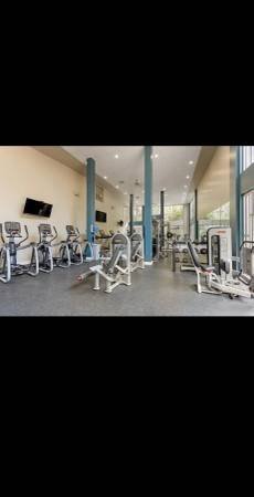 The monthly rental price covers all utilities, cable television, high-speed internet, a dedicated parking space, and access to building amenities including a fitness center, swimming pool, and on-site laundry facilities. The property also features around-the-clock security with regular patrols.