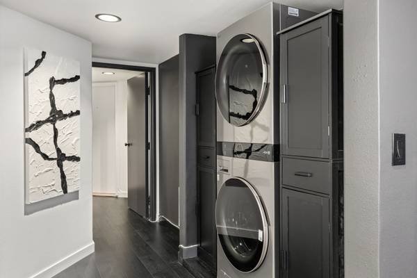 The apartment features a communal kitchen equipped with a refrigerator, a dishwasher, and a microwave. There is also a shared bathroom, which includes a washing machine, a dryer, and central air conditioning. The monthly rent is set at $1607. A garage space may be available upon request.
