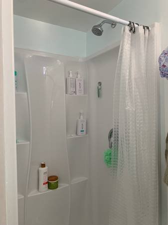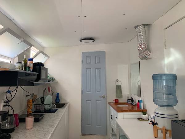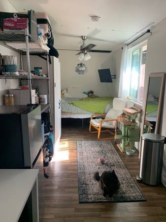 Furnished rental unit featuring a private entrance, dedicated bathroom, kitchenette space, and access to a yard.