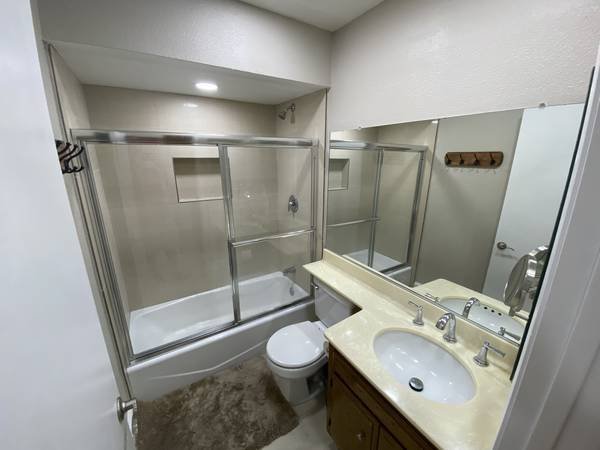 One bedroom is available for rent within a three-bedroom townhouse. The residence is situated in a peaceful neighborhood with ample community parking. It is conveniently located just a fifteen-minute drive from both Malibu and Pepperdine University. The lease term is for one year.