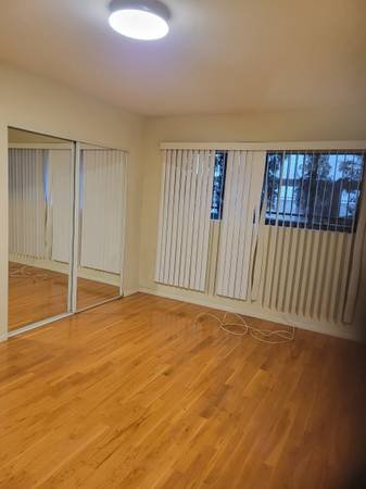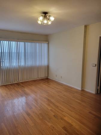 This bright and spacious one-bedroom, one-bathroom unit offers central air conditioning and heating. It features hardwood flooring and has been freshly painted. The kitchen and bathroom are finished with ceramic tile, and the apartment includes vertical blinds. On-site laundry facilities are available. The rental includes one gated parking space, with ample street parking also an option. Water and trash service are covered.