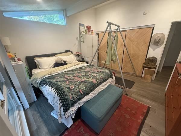 A furnished master bedroom featuring a private bathroom is available for sublease within a contemporary mid-century style house that includes four bedrooms and two bathrooms.