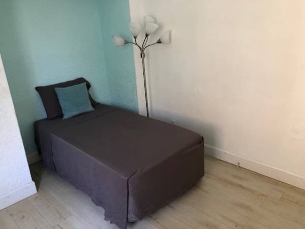 Enjoy lots of privacy, as each person has their own private entrance to the outside. The unit boasts wood floors and charming old Spanish-style building details, including extra high ceilings. It is equipped with air conditioning and a gas stove in the tiled kitchen. The room can be offered furnished.