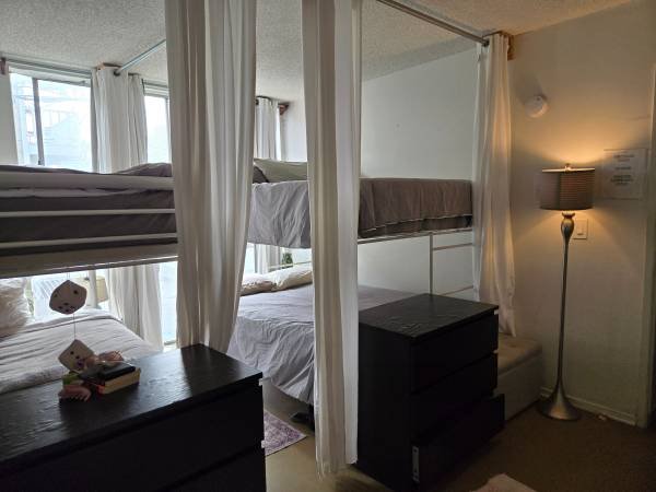 Vortex Land is a distinctive four-plex community encompassing 6,600 square feet. The property features two same-gender apartments, each offering a combination of private rooms and shared bedrooms for residents of the same gender.