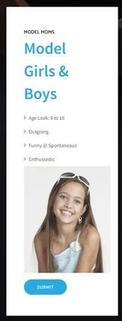 Model Moms is a mockumentary series centered on a photography studio and modeling agency, highlighting the eccentric stage parents the staff must collaborate with. To apply, please submit a brief description of yourself, your location, and recent photographs to: casting@pacific.productions